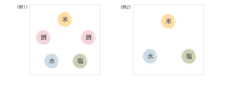 定期的(毎朝・半月ごと・一月ごとといった感じで)に、お米・お酒・お塩・お水・季節の野菜などをお供えするのが理想的ですが、以上は一例ですので可能な範囲で結構です。一番大切なのはお供えをする気持ちです。下にお供え物の並べ方の例を挙げておきますので参考にしてください。